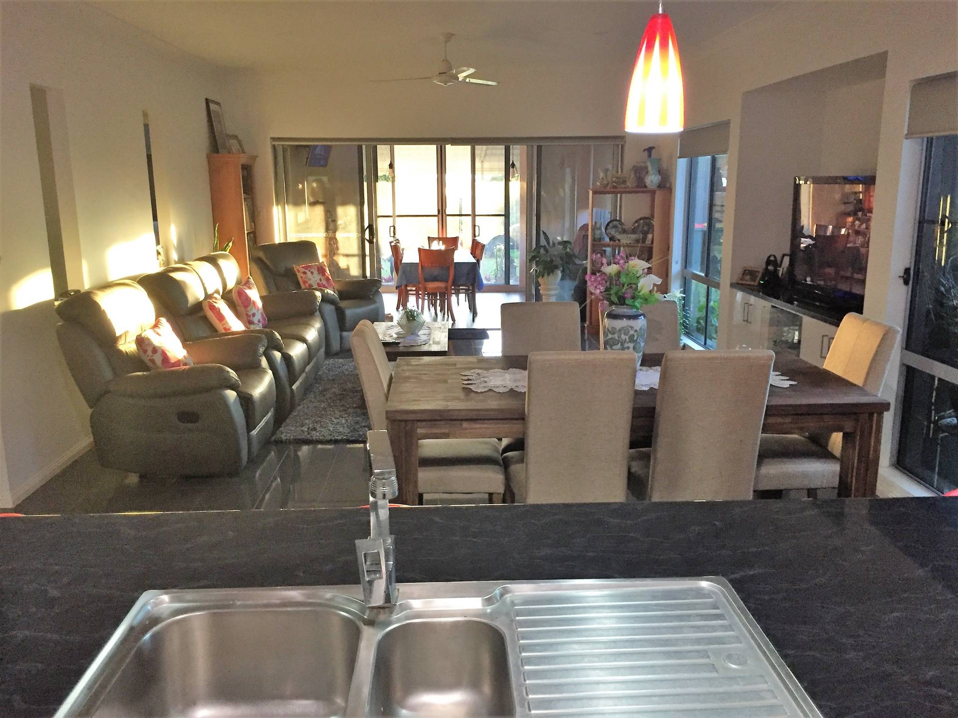 This impressively designed home is an ideal fit for a family. This home has four decently sized bedrooms each with their own built in wardrobes and the master bedroom has an ensuite. It is perfect for entertaining guests on any occasion, with a stylish galley kitchen and an open plan living area which extends out to a fully enclosed glass undercover outdoor area. Situated on a fenced 809 square meter allotment this home is also accompanied by a 7x5m colorbond powered shed which can be accessed from the street down the side of the house. Located in Pleasant View Estate it is close to the shops and is surrounded by recently built family homes.